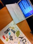 - Sh. & J are also in experimentation mode – it’s the first time they’ve done this form of abstract film making. In between groups they’re refining their practice and discussing what went well and what didn’t and how to change it the next time. Improvisation.