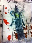 Artwork – very effective use of chalks and shading and water colours. Children talk of the ghostly effects and use of translucent tissue for ghosts. The girls invite me over to see their animation so far. They’re using a technique whereby their animated scenes ‘draw themselves’. Writing is contextual – jotting down dialogue as an aide-memoire and later – jotting down types of camera shot.